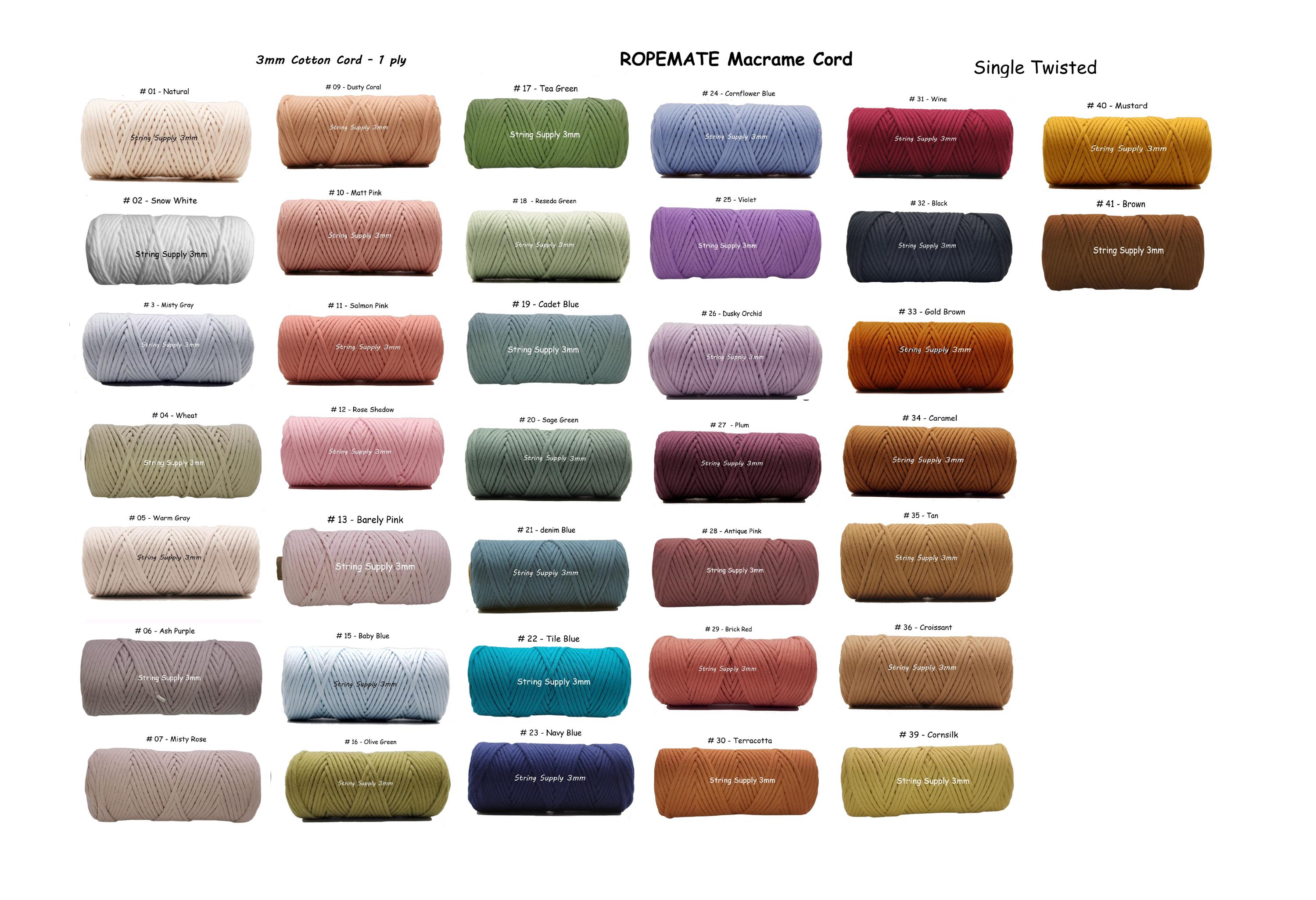 3 mm 100% Premium Soft Cotton yarn 1 ply ROPEMATE (88 soft fibers that creates a very soft rope with great feel and leaves a professional look) - String Supply Macrame Cord
